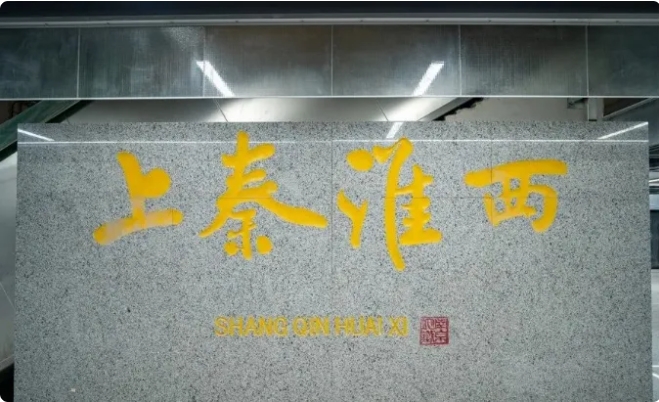 上秦淮西站的立柱和顶面以黑、白、灰三种色调为主,凸显南京地铁和谐淡雅的江南元素。