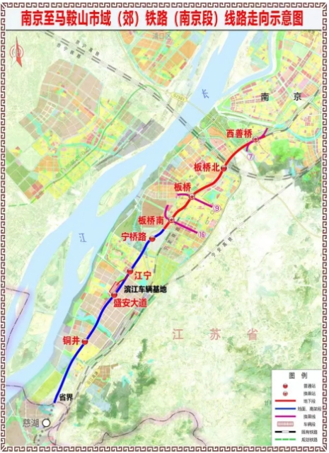 宁马城际一期起自南京市西善桥站,终点至马鞍山当涂南站,全线长约54.23公里,共设16座车站。据此前2025年南京市政府工作报告披露,今年南京将力争建成宁马城际。