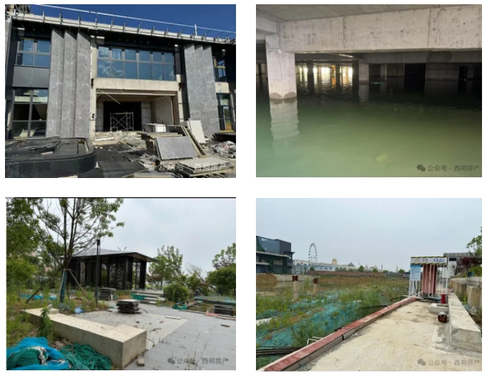 据实拍图显示,由于停工许久,楼盘地库内有积水。