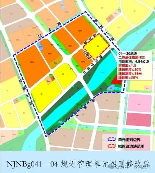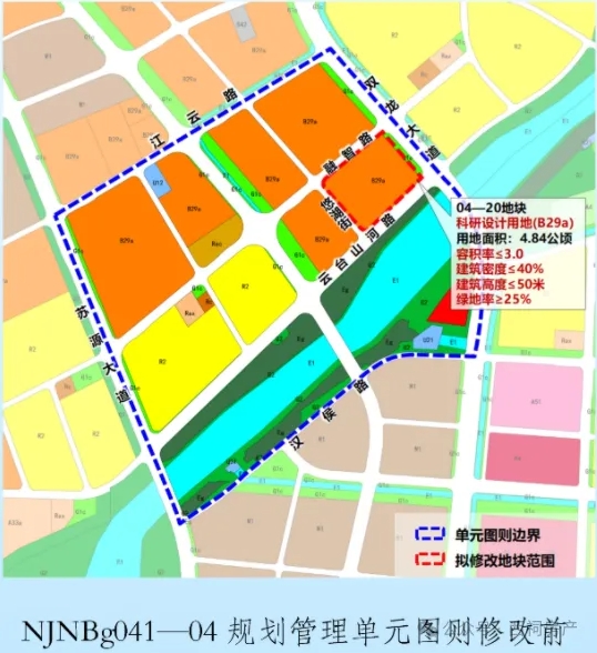 为盘活存量用地,完善云台山河以北片区城市功能,南京市规划和自然资源局会同江宁区政府开展了《南京未来科技城控制性详细规划》NINBg041-04规划管理单元图则修改工作。