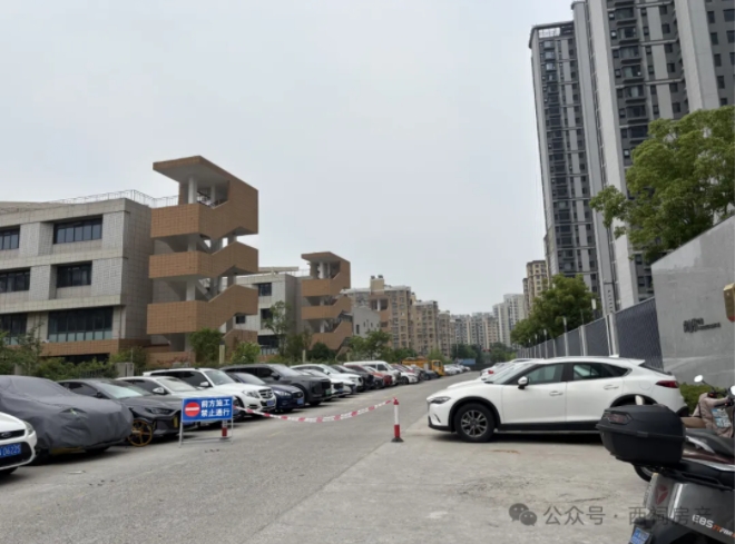 目前,该小区东侧道路志远路一半已被围挡。告知牌上写着:“前方施工 禁止通行。”