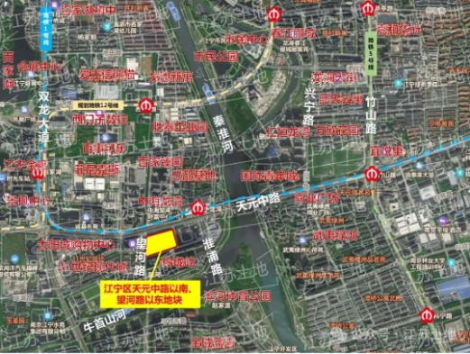 地块位于江宁主城中心城区核心区、百家湖片区,有着三大显著的价值优势:一是自然禀赋优越。地块坐拥牛首山河景观带、滨河体育公园、百家湖、杨家圩市民公园等多重景观。二是区位优势显著。地块距地铁1号线小龙湾站仅约百米,轨道出行十分便捷;地块紧邻城市主干道天元中路,10分钟到达南京南站、25分钟到达南京禄口国际机场。三是公共配套完善。地块紧邻南京第二大商圈“百家湖商圈”,景枫KINGMO、江宁金鹰、太阳城、1912、龙湖天街等多个商业体,提供丰富多元的商业消费体验;周边临近百家湖小学、百家湖中学、江宁开发区学校等多所优质学校。此外,地块北侧有多个产业园区,居住需求较为丰富。