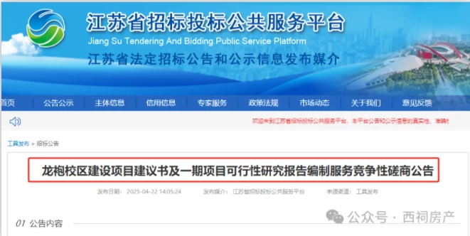 4月22日,龙袍校区建设项目建议书及一期项目可行性研究报告编制服务竞争性磋商公告发布,项目已具备招标条件。这意味着,龙袍校区一期将很快启动项目可行性研究报告研究。