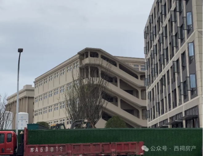 西祠房产在现场看到,位于01-08、01-09地块上的办公楼外立面还在施工中,还有部分玻璃尚未贴好。