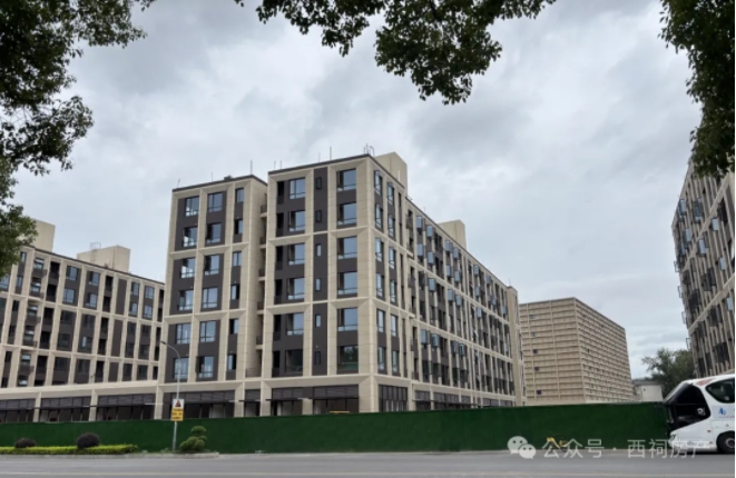 公寓已基本建好,工地内部有机器正在作业。