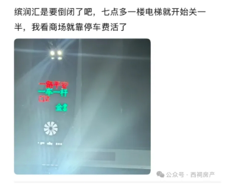 “缤润汇是要倒闭了吧,七点多一楼电梯就开始关一半,我看商场就靠停车费活了。”