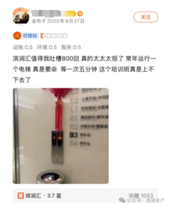 “滨润汇值得我吐槽800回 真的太太太抠了 常年运行一个电梯 真是要命 等一次五分钟 这个培训班真是上不下去了。”