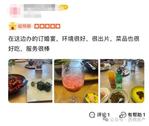 “在这边办的订婚宴,环境很好,很出片,菜品也很好吃,服务很棒。”