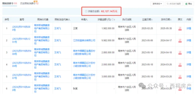 此外,其下属子公司南京市高淳区新城意象房地产开发有限公司于2024年被申请破产清算,高淳星湖商业街部分商铺也遭法拍。