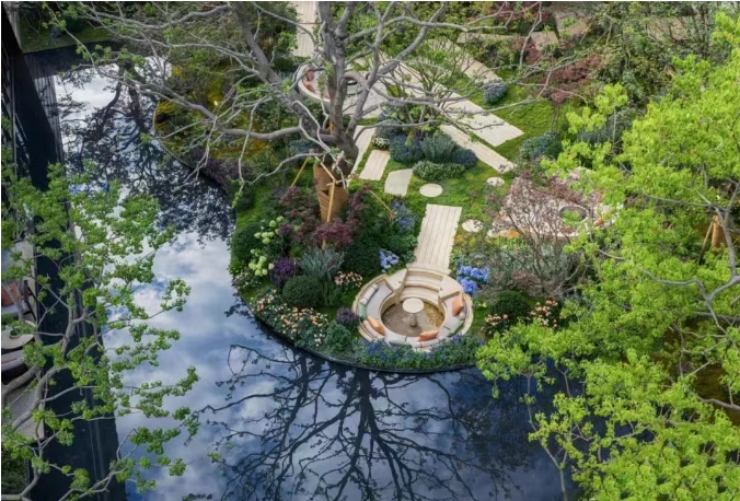 不负“沁百合”之名,看过实景园林,第一感觉就是花足够多、植物种类足够丰富、绿植足够密集。入眼看去,乌桕、五角枫、元宝枫、红枫等树植种在了每一处小道的蜿蜒处,树下是花团锦簇的绣球花、鲜艳的百合花乃至很多新奇且美丽的植物,其中波光粼粼的水景蜿蜒而过,如果不说,谁会想到这样的美景只是小区的园林,还只是小区园林的一小部分。
