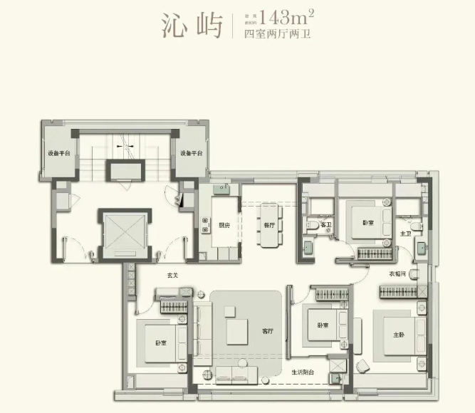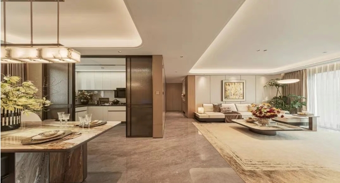 效果图主城、低密、改善,沁百合的优势从样板间的设置便能看出了,TA的实景样板间,在2楼。一梯两户,电梯双开门设计,最大化保证了私密性和得房率。