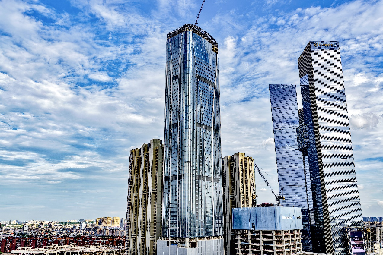 到今年,天誉公寓的幕墙向上“攀登”的进度肉眼可见。按此节奏推算,在这个夏天结束前,天誉公寓塔楼的主体幕墙将完工。后续若顺利,预计10月底左右,公寓最后的塔冠装饰就可以完工。