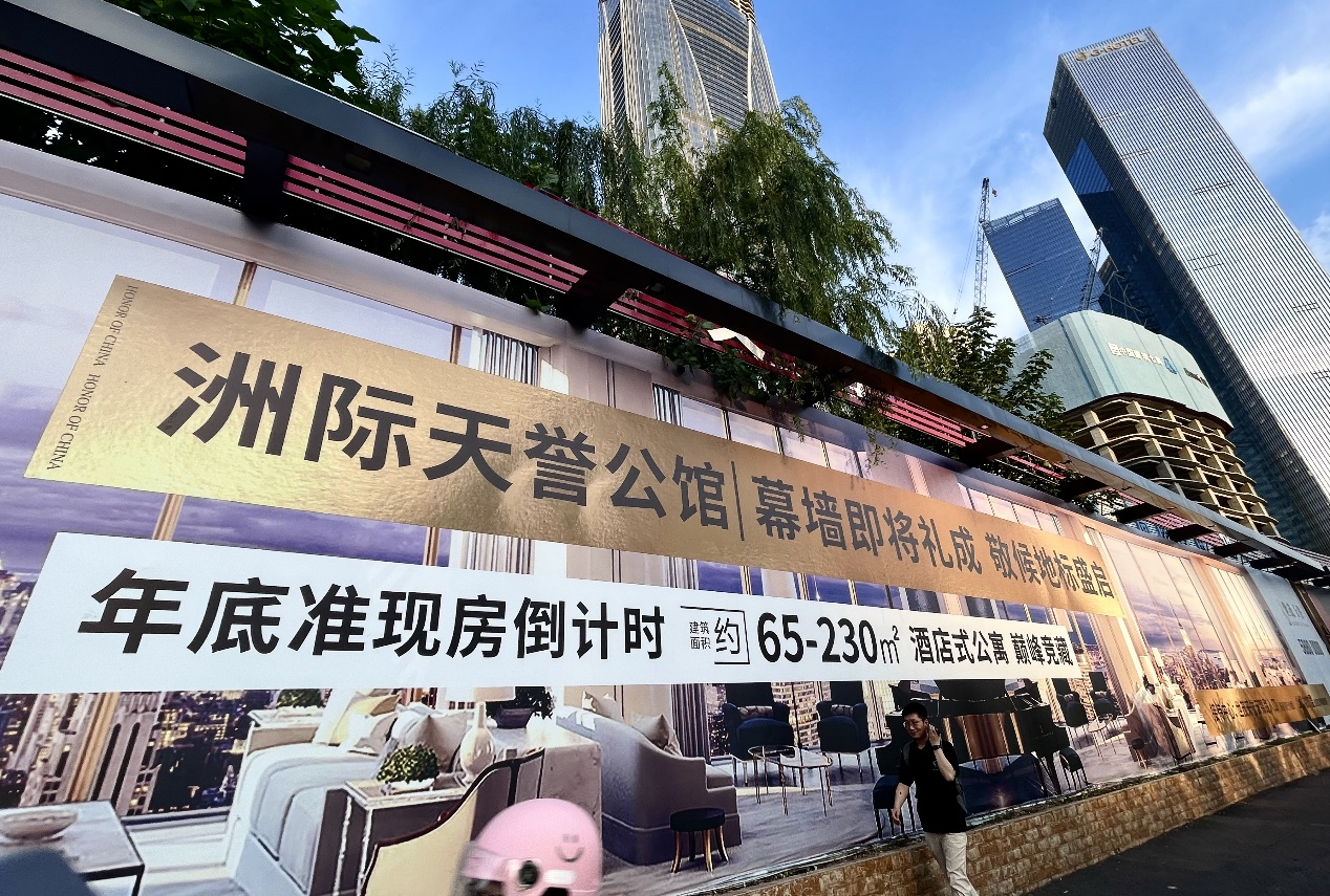 2025年这个夏天,天誉又起了一些显著的新变化:项目围挡画面已更换,释放的消息,是公寓幕墙即将封顶,以及“年底准现房”。