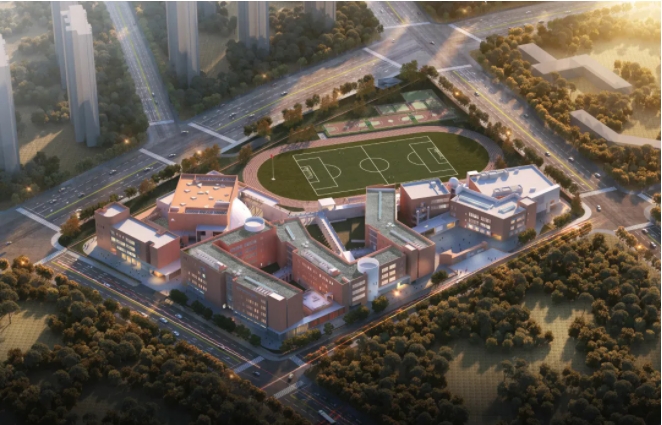 据此前招标公告显示,该学校将建设一所高标准初级中学(36班九年一贯制学校),总用地面积 53420.75 平方米,总建设面积约 57312平方米。具体建设内容包括教室、行政办公楼、图书馆、多功能报告厅、艺体馆(体育馆)、食堂、地下车库、设备用房等各类用房及室外田径场、篮球场、排球场等相关配套设备。学校工期为810日历天,合同估算价为4.3亿左右。