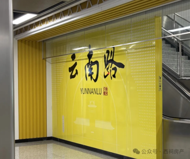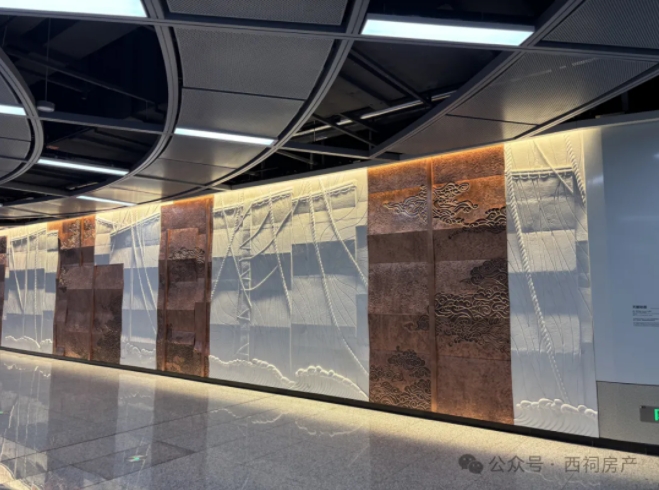 南京地铁5号线的站名墙也成为乘客争相打卡的点之一。站名墙背景图案选用南京各处的民国建筑,与线路文化相呼应。此外,车站内的导向标识、灯具设计等也融入了民国时期的元素,如伞形灯具、红砖装饰等,体现了对历史文化的传承。