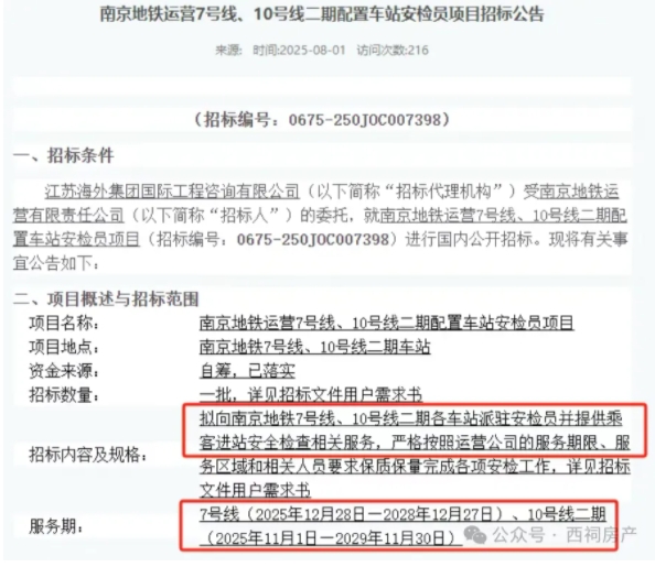 此外,据《南京地铁运营7号线、10号线二期配置车站安检员项目招标公告》显示,地铁10号线二期为2025年11月1日—2029年11月30日,这说明10号线二期的正式开通运营时间,大概率锁定为11月1日,该条地铁开通时间正式进入最后三个月“倒计时”。