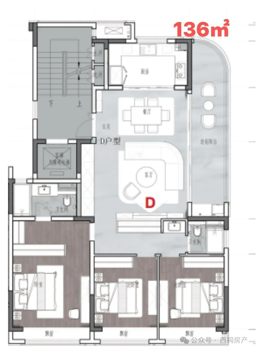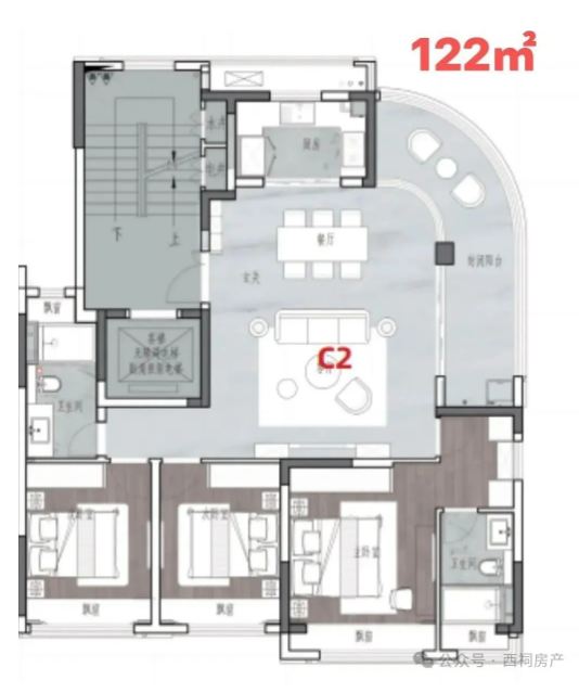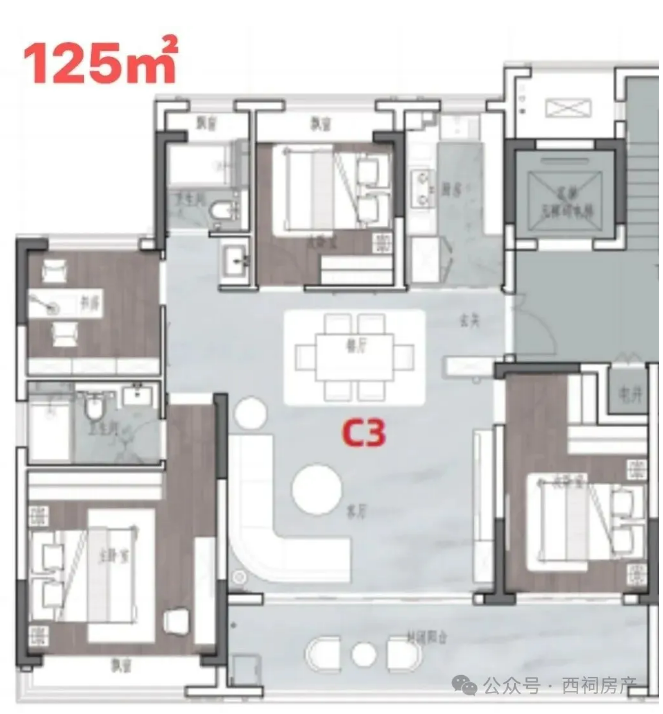 有消息称,项目做了9种户型,1号楼户型建面约125、128、136㎡;2号楼建面约119、129、122㎡;1号楼顶层做到了复式结构,建面约223、225、226㎡(具体以开发商发布为准)。