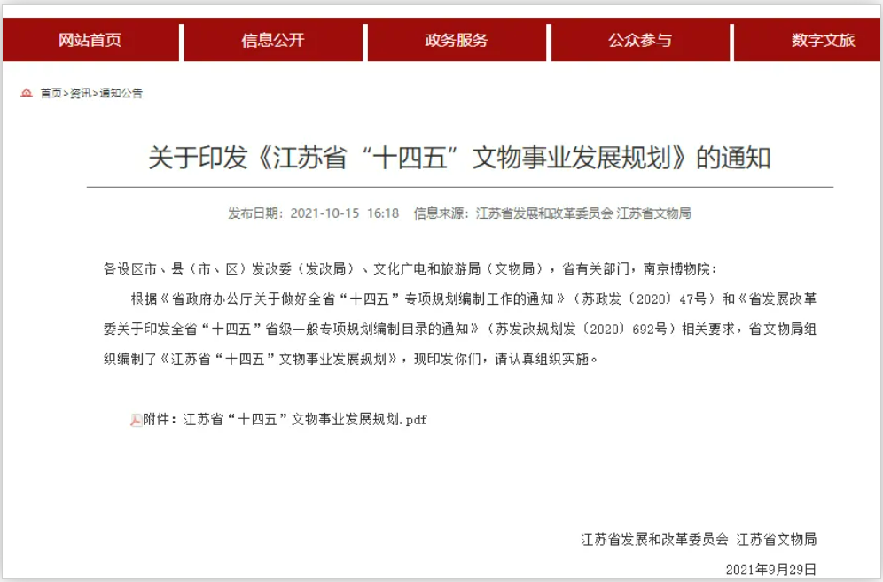 2021年10月,由江苏省文化和旅游厅负责编制的《江苏省“十四五”文化和旅游发展规划》发布,其中明确提出了“推动南京博物院故宫馆建设和故宫南迁文物库房改造”。