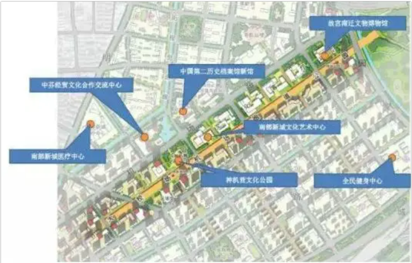 2022年3月,南京市南部新城管委会举办中央生态住区品质研讨沙龙,会上提到,中央文化区位于机场跑道东段,未来周边将打造文化艺术中心、南博故宫馆等众多文化类场馆。