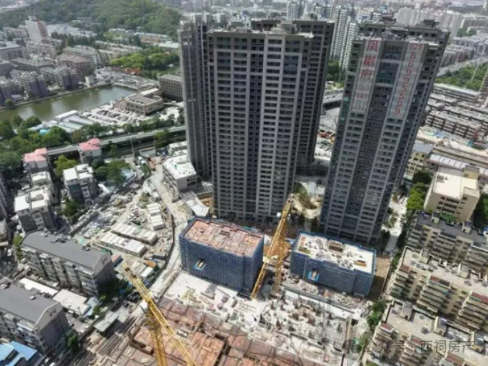 西祠房产在现场看到,目前项目正在正常施工中,其中3栋楼高层外立面施工已经完成,洋房还有脚手架包裹。