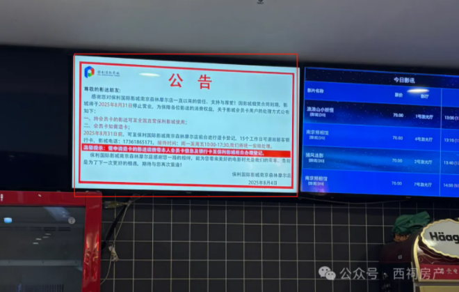 位于负一层的电影院也宣布也将于本月底闭店。