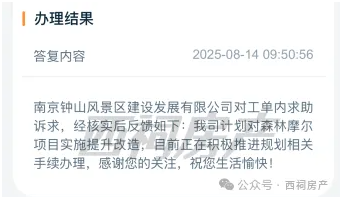 8月14日,南京钟山风景区建设发展有限公司回复:“我司计划对森林摩尔项目实施提升改造,目前正在积极推进规划相关手续办理。”