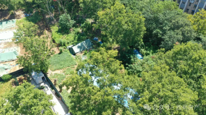 西祠房产在现场看到,丁奉家族墓周边绿植茂密,内部已被围挡,墓葬上方盖了雨棚,防止雨淋。