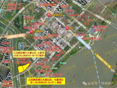 项目位于江北新区核心区,南临横江大道,规划有密集的次干路与支路网,邻近规划地铁15号线闻涛广场站,公共交通与轨道交通形成闭环换乘,交通便利。地块西南侧紧邻南师附中九袱洲路校区,根据此前规划,该学校拟规划用地面积约130819㎡,将新建75个班中学(初中30个班,高中45个班),预计2026年建成。周边有扬子江金茂悦、绿地海悦、大华云江印月、江与城、中交锦方等已交付小区,还有在售的花语天境新房。附近还有绿地小学、芳草园小学七里河校区等教育资源,可满足片区教育配套需求。地块东南侧为启龙亲江乐园,临近滨江风光带,可尽享滨江景观风貌。