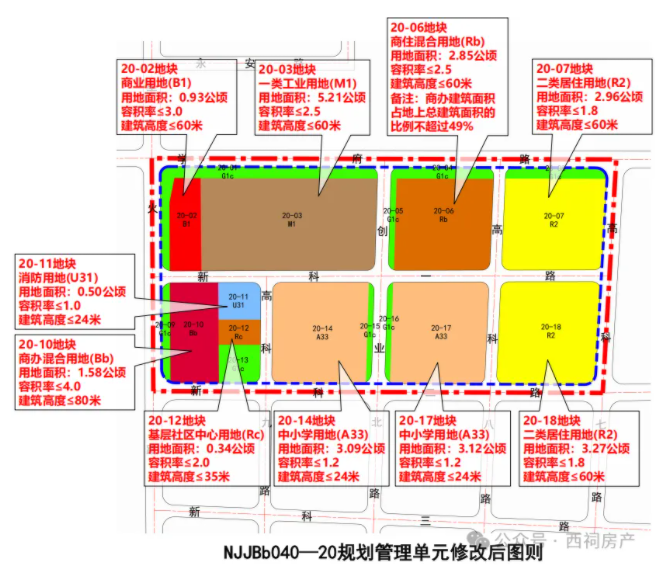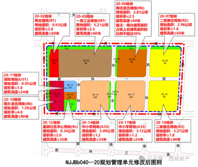 8月28日,南京江北新区NJJBb040单元控制性详细规划20规划管理单元图则修改公众意见征询稿发布。规划显示,江北高新一批科研用地取消,新增3幅涉宅用地(约9.08公顷),以及中小学教育用地、商业用地、工业用地等。
