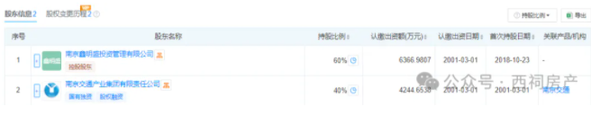 天眼查显示,南京朗通60%股权由朗诗集团子公司南京鑫明盛投资管理有限公司持有,其余40%归属南京交通产业集团有限责任公司。