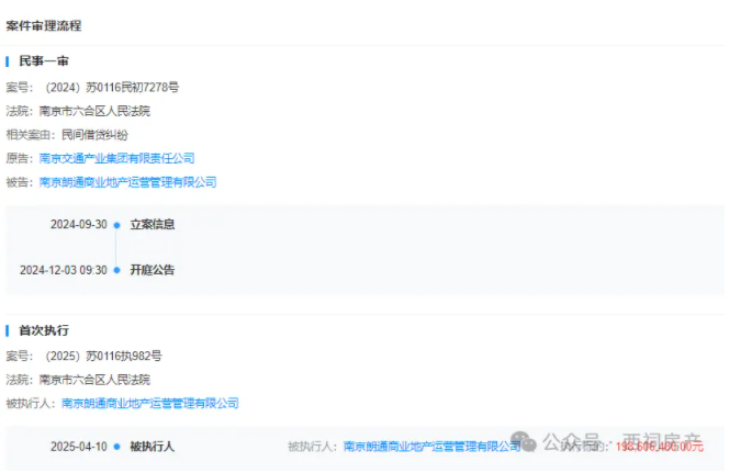 目前,南京朗通已被限制高消费、被列为被执行人。此外,天眼查显示,因民间借贷纠纷,南京朗通被股东南京交通产业集团起诉,最终,南京朗通被执行约2亿元。