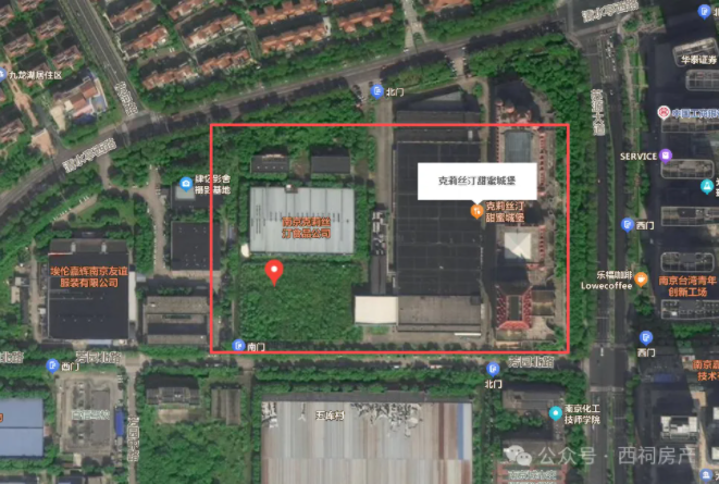 公告显示:“现场考察、答疑时间:2025年9月12日上午10:00至南京市江宁区清水亭西路189号集中踏勘。”地图显示,清水亭西路189号正是甜蜜城堡以及南京克莉丝汀食品公司所在地。西祠房产也咨询了招标公告上的联系人,对方表示:“(招标拆除)确实是克里斯汀的甜蜜城堡,下周四将进行集中勘探。”