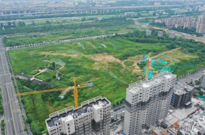 西祠房产7月实探张昭墓现场发现:现场考古工作已告一段落,地面还能看出考古工作遗留的沟壑,部分区域被覆盖绿网,不远处可以看到并列的油库。