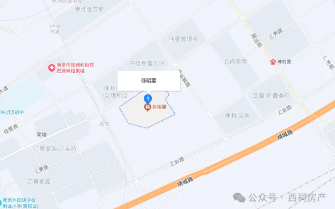 张昭墓位于南部新城油库公园地块,周边有中信泰富九庐、保利招商·文璟和颂、伟星誉璟府等小区。