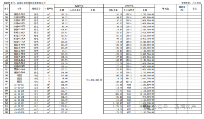 据评估报告显示,江苏启迪名下资产包含麒麟启迪科技城的住宅、商业、办公、土地等。