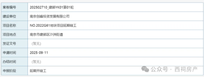 近日,据南京市规划和自然资源局官网显示,河西南江苏金峰水泥总部——NO.2022G61地块项目延期竣工正在申报,申请时间为2025年9月11日。这意味着,该项目竣工或将延期!