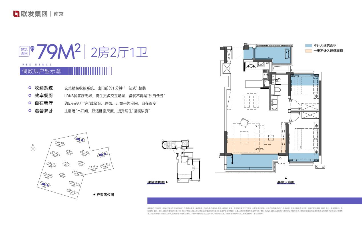 建面约69m²-130m²多元户型,打破南京小户型产品的市场空白。户型格局灵动可拓展,全系约100%得房率,赋予新青年生活更多想象。
