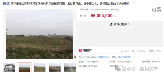 9月19日,备受关注的南京浦口区桥林片区一宗大型工业用地(原紫光集成电路基地一期项目所在地)的司法拍卖结果出炉。该地块面积约40万平方米,由南京万好电子科技有限公司以约9600万元竞得,相比于市场价(19514万元),降了近一个亿!