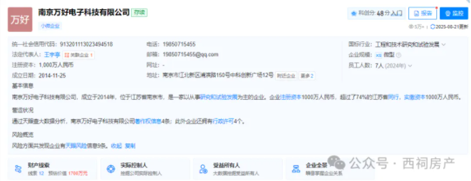 天眼查显示,南京万好电子科技有限公司成立于2014年,位于南京江北新区,是一家以从事研究和试验发展为主的企业。企业注册资本1000万人民币,超过了74%的江苏省同行,实缴资本1000万人民币。