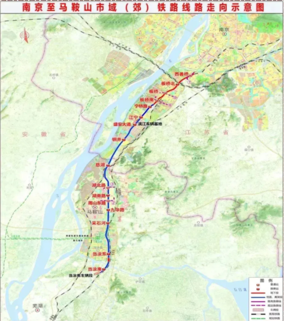 宁马城际工程正线全长约65.59km,共设20座车站,平均站间距3.4公里。其中南京段26.51km,全线共设8座车站,其中地下站4座、地面站1座、高架站3座,设滨江车辆基地一座。