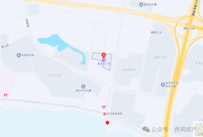 蓝宝石广场位于江北高新,靠近地铁3号线东大成贤学院站,曾是2010年南京金洽会签约的项目,由中新集团南京新型建筑材料有限公司建设,总投资5亿,其作为高新区首个写字楼项目,被寄予厚望。