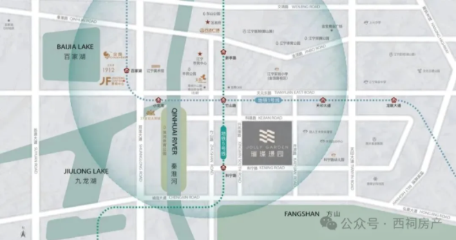 对璀璨系产品而言,“择址” 从不是简单的地段选择,而是对 “15分钟璀璨生活圈” 的精准落地。璀璨璟园项目紧邻江宁核心区,共享成熟配套,用便捷交通与醇熟配套诠释理想生活:距地铁5号线科宁路站直线距离约400米处,距1号线竹山路站直线距离亦仅约1公里,日常通勤无需奔波;另外百家湖、竹山路、江宁万达三大商圈环伺,购物、休闲、社交需求轻松满足,让 “离自然很近、离喧嚣很远” 的居住向往,成为触手可及的日常。