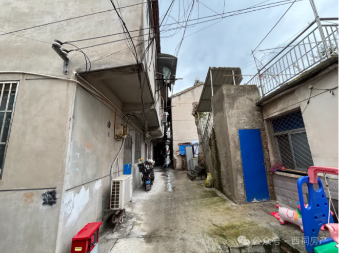 西祠房产在现场看到,津浦新村部分房屋疏于打理,红砖裸露在外,不少人家的墙面已返潮发黑,打满了“补丁”。