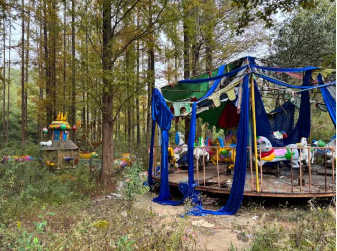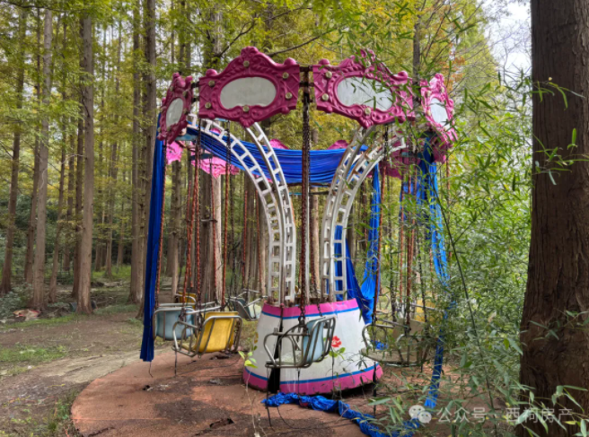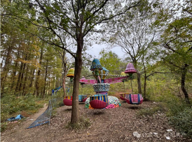 景区内被网友称为充满“梦核”感的废弃游乐园,园内游乐设施普遍锈蚀、破损严重。