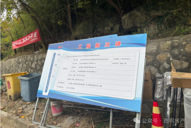 据景区内的工程概况牌显示,该工程为铁心桥街道高家库社区宁丹路以东片区环境综合整治施工,建设单位为南京市雨花台区铁心桥街道高家库社区居民委员会,工程规模为2461439.4元,计划开工日期为2025年9月30日,计划竣工日期为2025年11月14日,包括拆除工程、景观工程、沥青工程、绿化工程、安装工程等。