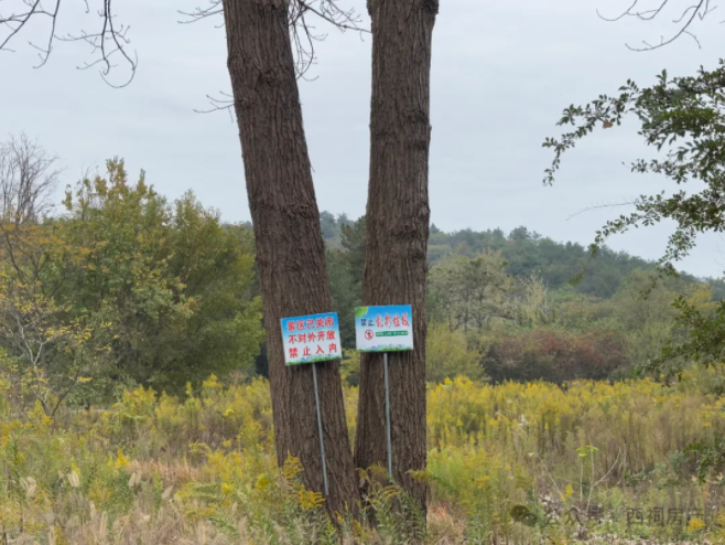 不过,景区更多的地方还是一片荒凉,多处景点尚未修缮。很多树上贴有“园区暂不对外开放 严禁入内 请原路返回”“野猪出没 请注意安全”“此处有蜱虫”等警示牌。