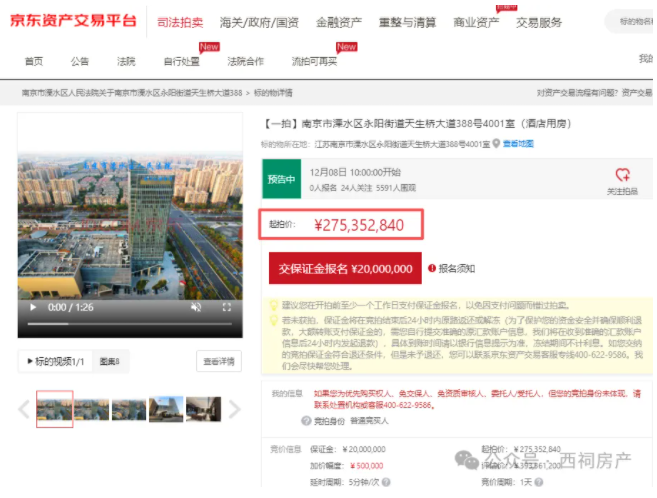 继影院、部分商铺后,刚刚,溧水大型综合体时代国际广场配套的五星级酒店——溧水新时代开元名都大酒店遭拍卖,起拍价降了超1亿元!
