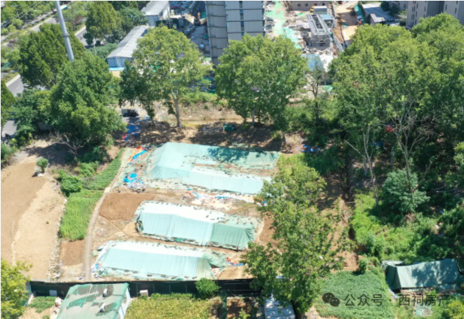 据西祠房产今年8月实探,丁奉家族墓周边绿植茂密,内部已被围挡,墓葬上方盖了雨棚,防止雨淋。