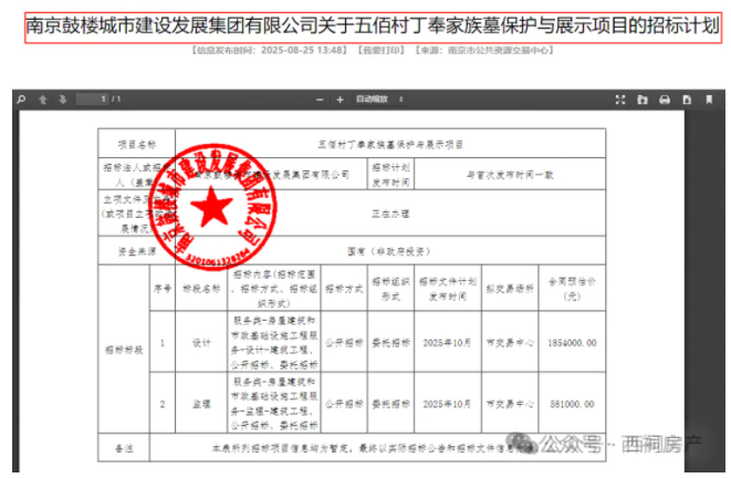 五佰村丁奉家族墓保护与展示项目进展时速!2025年8月,项目招标计划发布,据显示,丁奉家族墓保护与展示项目设计、监理合同预估价分别约为185万和58万。>>>重磅招标发布!原址保护三国名将墓!南京将添新地标