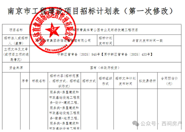 11月19日,南京体育集团场馆运营管理有限公司关于南京青奥体育公园专业足球场改建工程项目的招标计划(第1次更新)发布。招标计划显示,南京青奥体育公园专业足球场改建工程项目合同预估价超3亿元,包含全过程工程咨询、桩基、拆除工程、施工总承包等。
